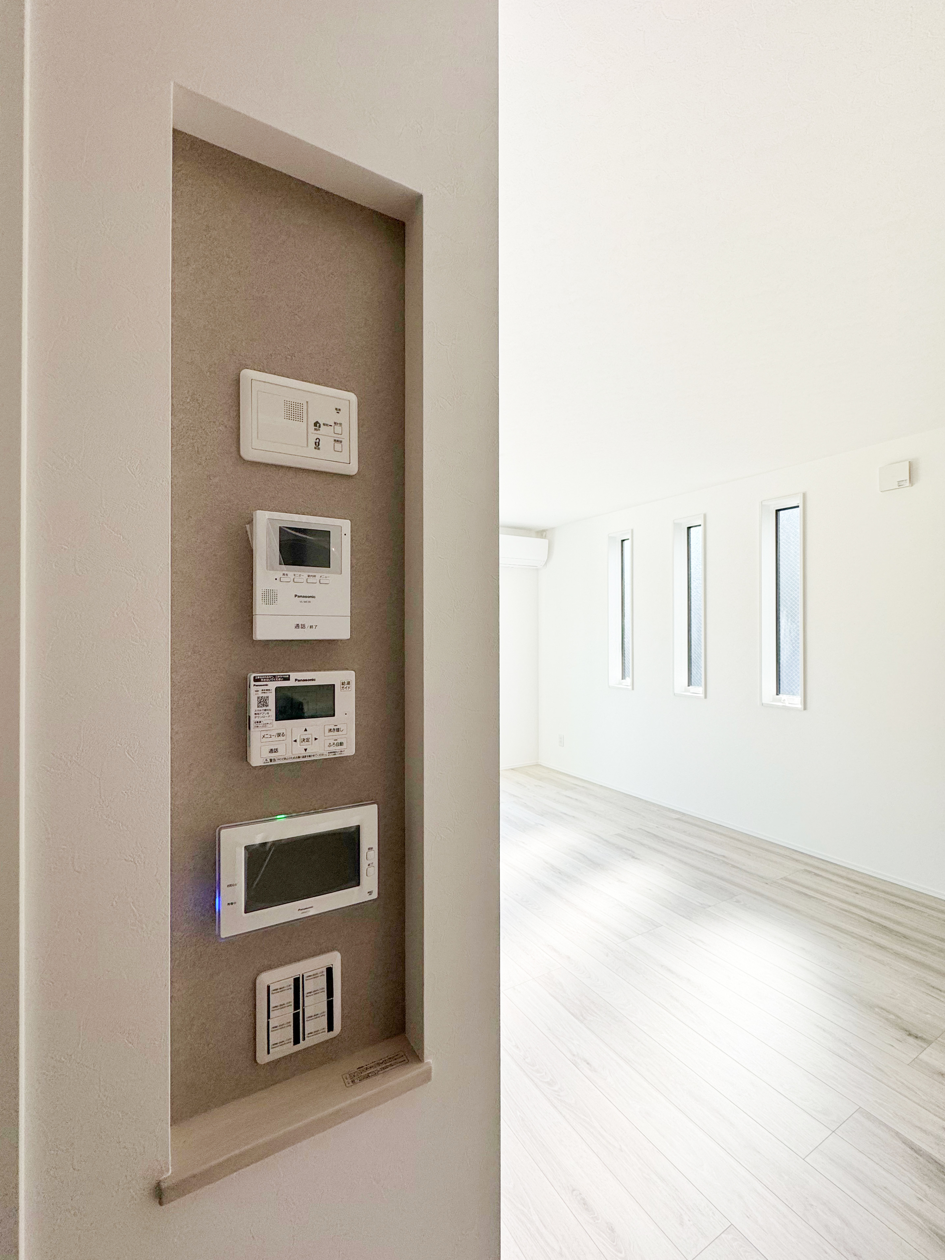 ニッチ棚には、日常的に使用する操作パネルやスイッチ類を1ヵ所に集約。