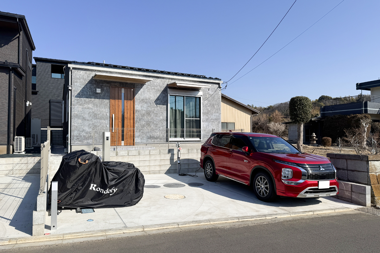 駐車場スペースには、自転車をすっきり収納できるサイクルスタンドを設置しました。お休みの日は、自転車で買い物に出かけたり、神社へ行ったりと、気軽に外へ出られるのも嬉しいです。