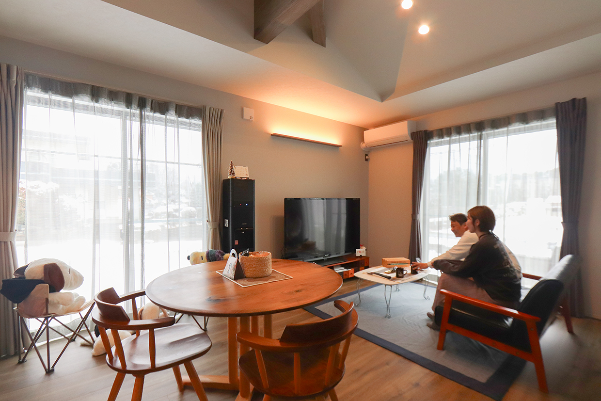 また、住み始めてからは高性能住宅の快適さを日々実感しています。日中はエアコンを使用していますが、雪の日でも途中で運転を止めるほど室内が暖かく、断熱性能の高さに驚きました。さらに、太陽光発電を搭載しているため、日中に発電した電気を活用して洗濯乾燥機を使用するなど、太陽光発電で貯めた電気で家事を行っています。室内の温度が安定しており、快適に過ごすことができています。